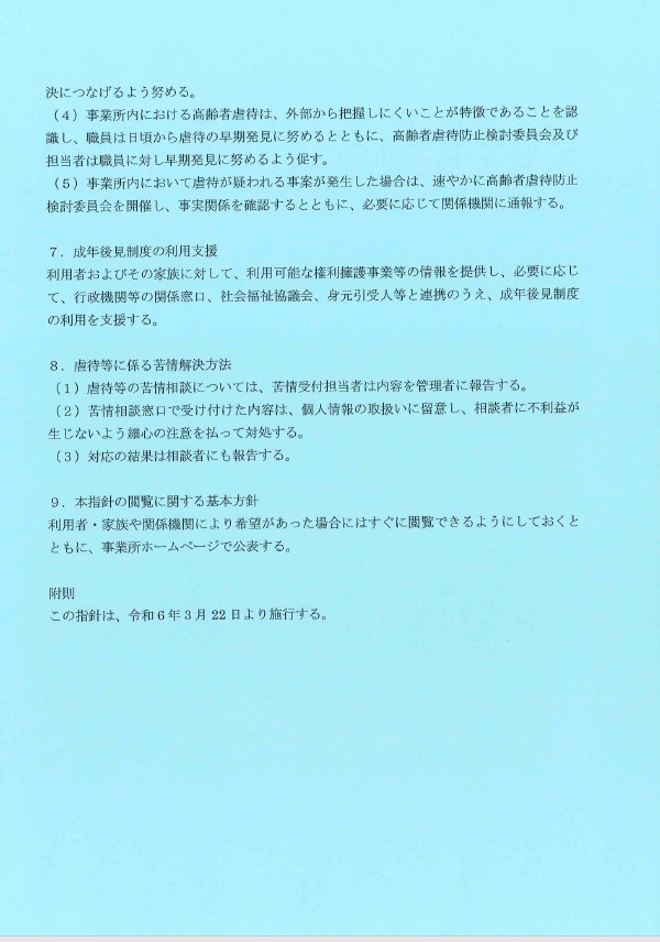 情報公開(高齢者虐待防止のための指針)information disclosure